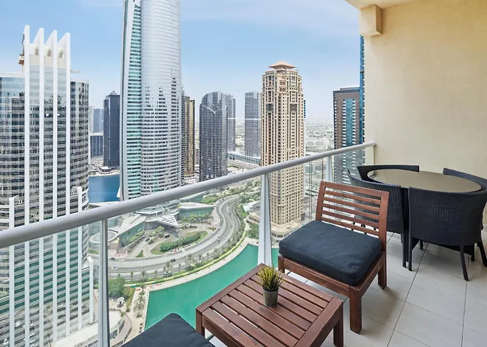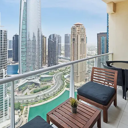 Apartmentul Modern & Spacious 2-Bed Condo With Panoramic Lake Views, Dual Balconies, Steps From Dubai Jlt Metro By "La Buena Vida Holiday Homes" cu 2 dormitoare este situat la aproximativ 10 minute cu mașina de Universitatea Americană din Dubai și oferă facilități de spa, cum ar fi o saună și facilități de saună. Pe lângă o frizerie, acest apartament de 125 m^2 are, de asemenea, vederi la oraș.